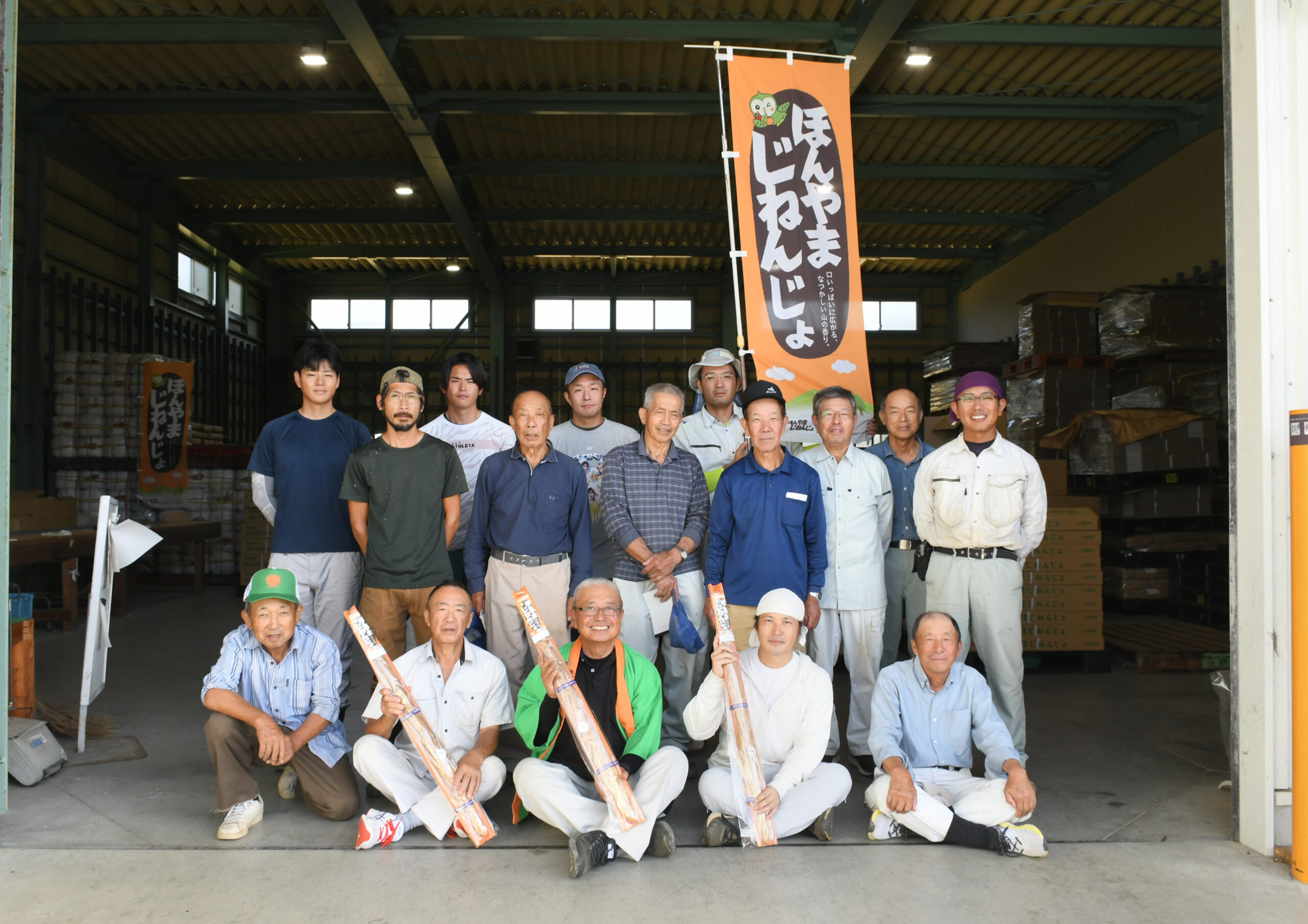 ほんやま自然薯部会が「ほんやまじねんじょ」の目揃え会と初出荷を行いました。生産者や市場関係者ら23人が参加し、約3100本を出荷。藤田克巳部会長は「今年は、天候に恵まれや会員の努力もあり、白くて粘りが強く香りの良い自然薯ができた。ぜひ味わってほしい」と話しました。じまん市や県内を中心に中京・関東・大阪の市場へも出荷し50tの出荷を目指します。