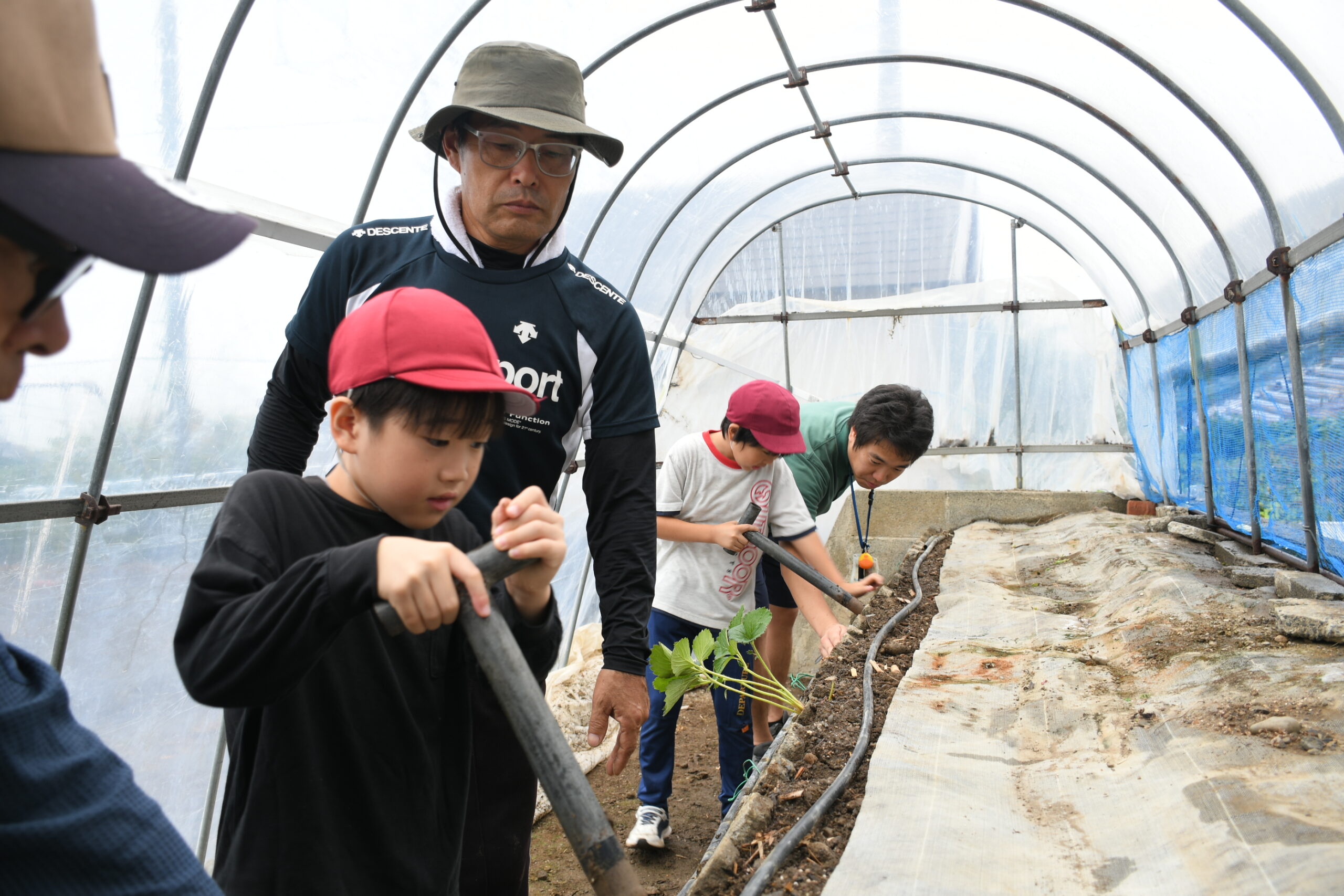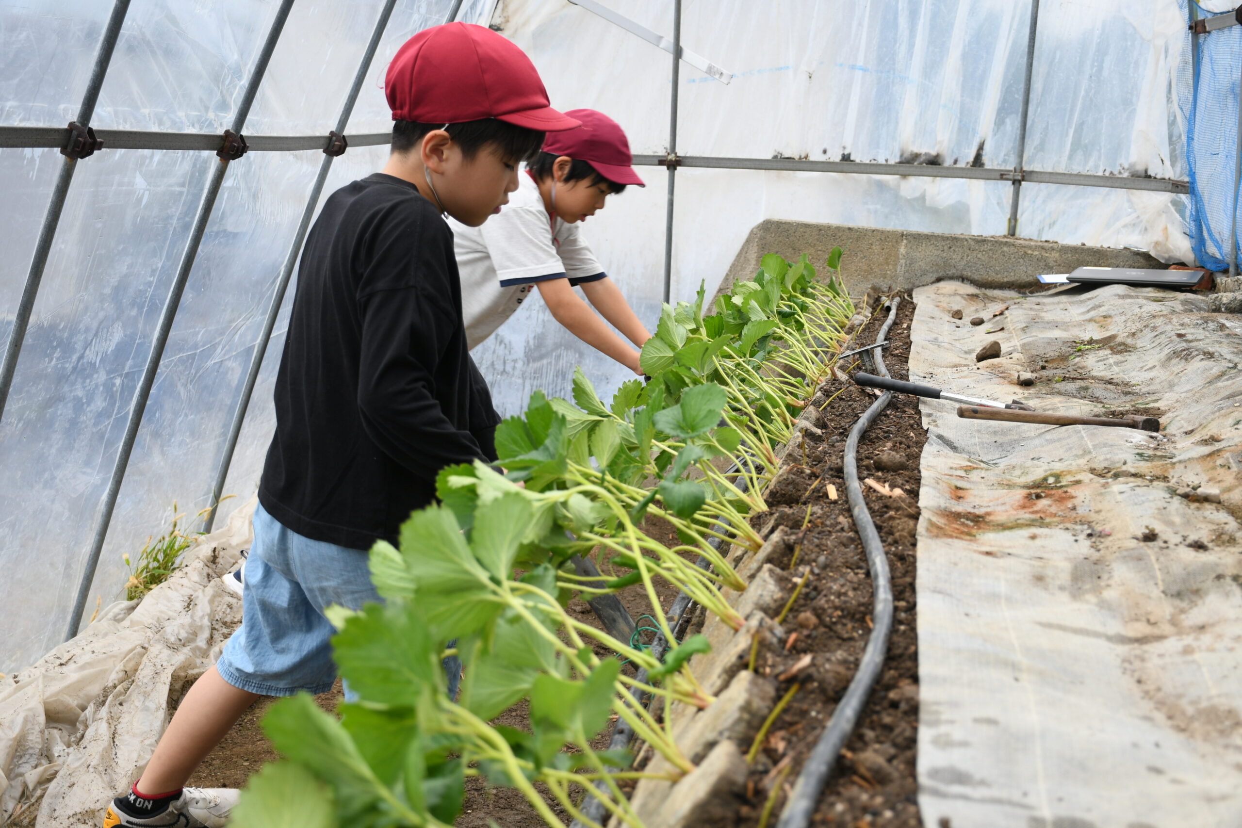 久能小学校の3年生2人が、校内のハウスで石垣栽培のイチゴ苗を定植しました。南部総合経済センターの職員と生産者の指導を受けながら、石垣の間に、金属の棒を挿して穴を開け、イチゴ苗の向きを確認しながら、その穴に丁寧に植えて行きました。児童は「イチゴが苦手な子でもおいしいと思えるイチゴを作りたい」と話しました。今後は、イチゴ農家への取材や石垣いちごの歴史の学習などを通じて、地域のイチゴマップづくりに取り組む予定です。