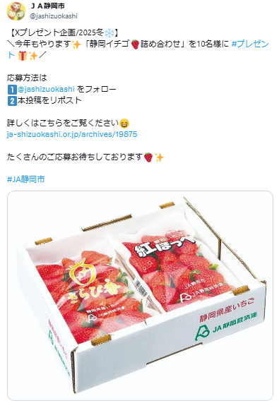 JA静岡市公式Xでは、【Xプレゼント企画/2025冬】を開催中です!