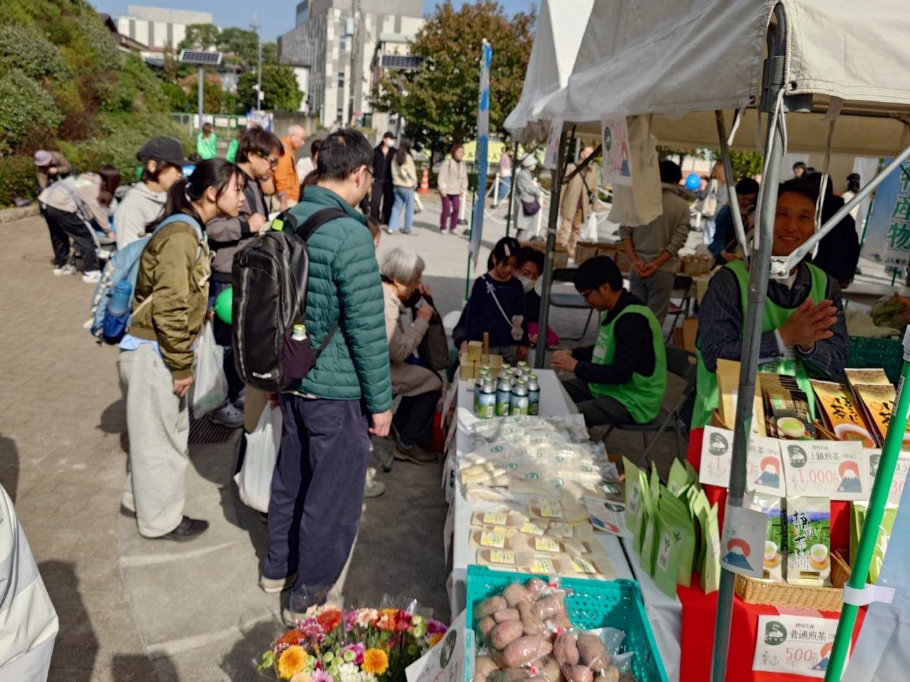 JA東京むさしの三鷹地区青壮年部との交流活動の一環として、今年も毎年恒例の三鷹市農業祭に、部員5人が参加しました。「ほんやま自然薯」や「あさはた蓮根」、静岡茶、抹茶、よもぎ餅、花などを販売し、JA静岡市の農産物をPRしました。
