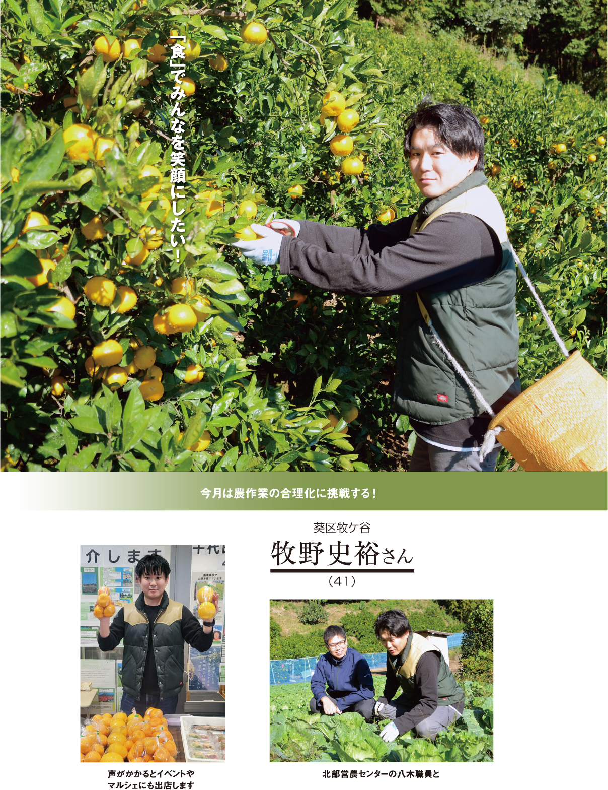 今後は、農業に興味のある方がすぐにでも始められるような環境づくりにも取り組みたいと考えます。農作業の合理化を進めながら、地域の皆さんと一緒に農業をもっと元気にしていきたい。そして、「食」でみんなを笑顔にしていきたいです。