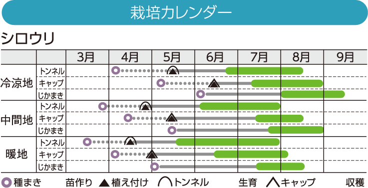 低温に弱いため、トンネル栽培やキャップ栽培を行います。トンネルは夜間の保温と日中の換気のため裾の開閉で温度調節を行います。キャップ栽培は、ビニールで約30㎝角のあんどんやドーム状のキャップをかぶせます。トンネルやキャップの中が茎葉でいっぱいになるくらいまで育ったら取り外します。